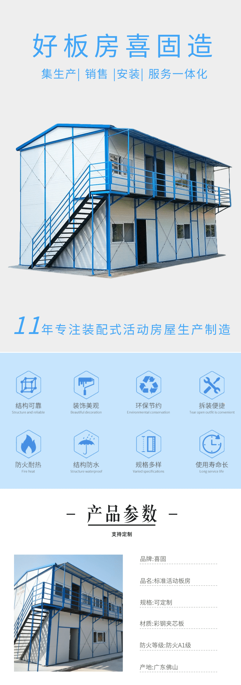 公司生產(chǎn)的“喜固”牌系列活動板房是在日式活動板房及國內(nèi)同類產(chǎn)品的基礎上經(jīng)過論證實踐后加改進而成的,從而使“喜固”牌系列產(chǎn)品達到快速安裝、拆遷容易、美觀、安全、節(jié)約成本等特點。